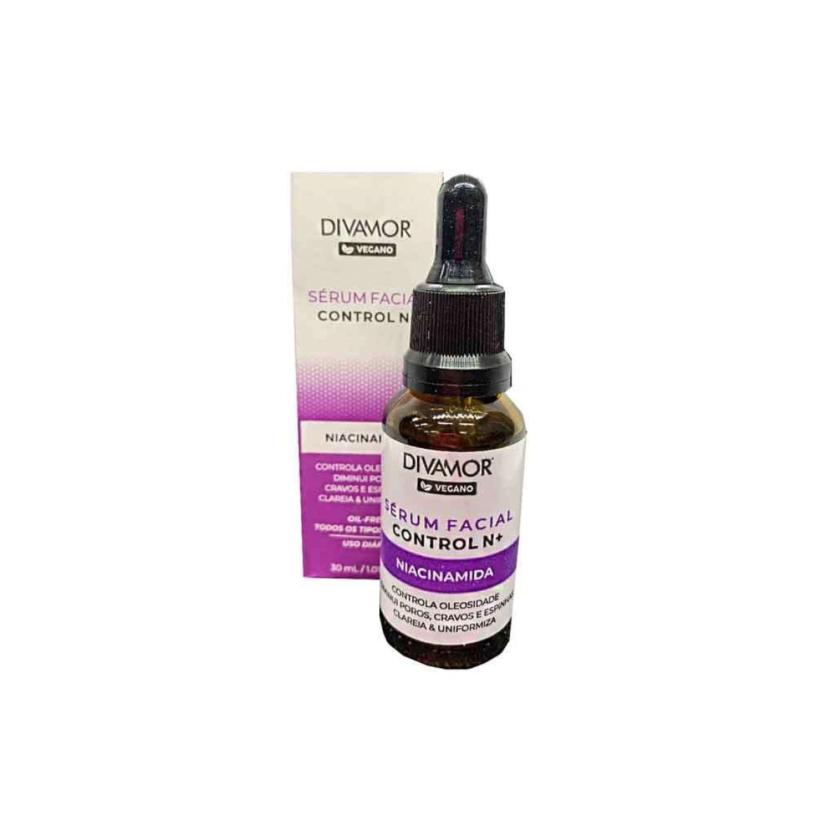 SERUM FACIAL DIVAMOR CONTROL N+ NIACINAMIDA 30ML Retome o controle da sua pele com o sérum facial Control N+. Sua formula concentrada com Niacinamida (vitamina B3) combate a oleosidade, auxilia no tratamento da acne, cravos e diminui poros. Tem ainda ação clareadora, reduzindo manchas.