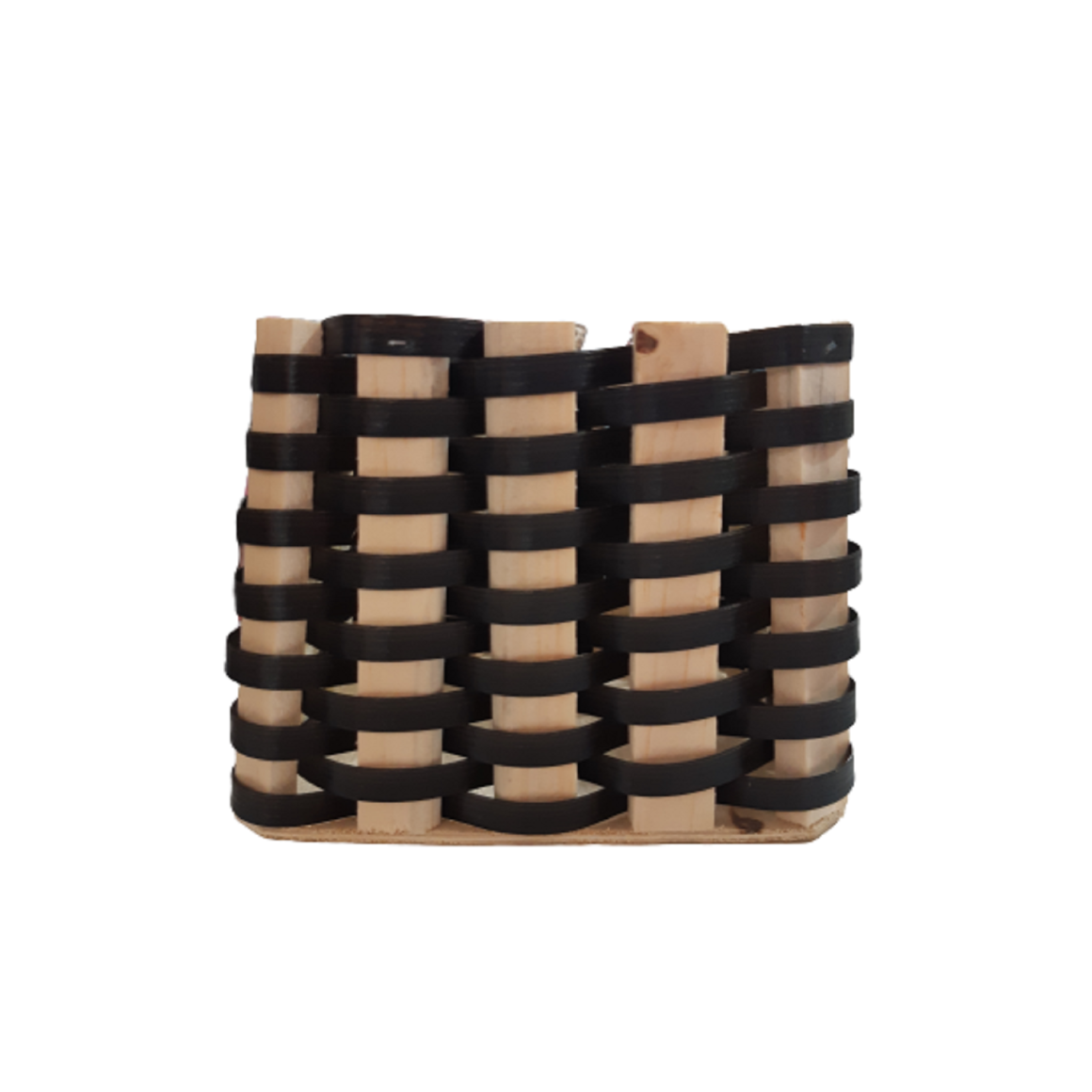 CACHEPOT DE MADEIRA COM VIME SINTÉTICO PT15